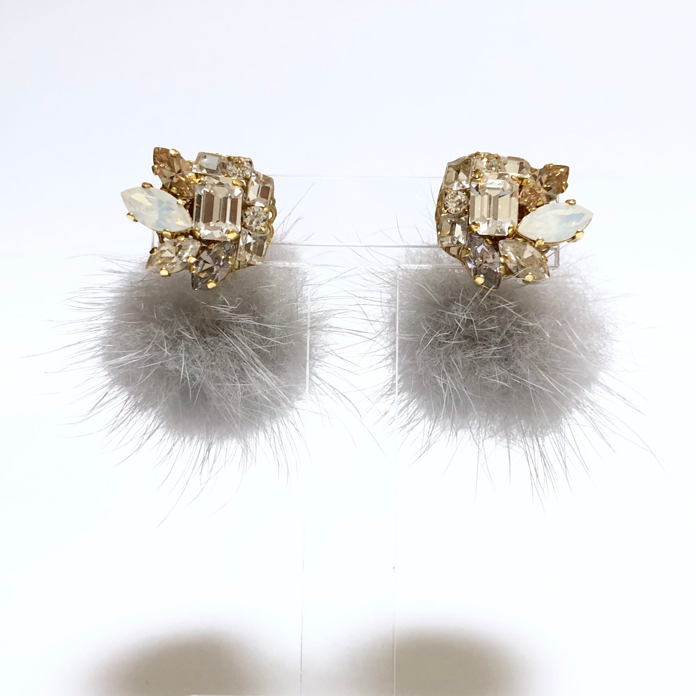 サイズは約直径3cm(左右揃うものを選んでお作りしていますが、ファーなので個体差がある場合がございます)